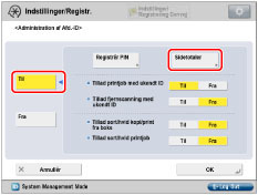 Tryk på [Administrationsindstillinger] → [Brugeradministration] → [Administration af Afdelings-ID].