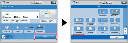 Du kan også vælge tekst , der allerede er registreret i [Registrér tegn til sidenummer/vandmærke]. (Se "Registrering/redigering/sletning af brugerdefineret tekst til sidenummerering og vandmærker.")