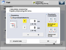 Hvis du vælger to af [Side- nummerering], [Nummerering af kopisæt] eller [Printdato] til at printe på samme placering, vises en bekræftelsesmeddelelse, når du trykker på