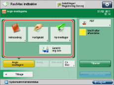Sætter du en adressetype 'Til' i [Begræns ny modtager], kan du ikke indtaste nye modtagere af denne type. Vælg en gemt modtager med brug af den lokale adressebog, fjernadressebogen, LDAP-serveren i [Adressebog] eller med tryk på en hurtigkaldstast i [Hurtigkald]. (Se "Begræns sendefunktion.")