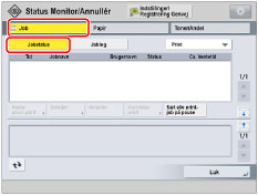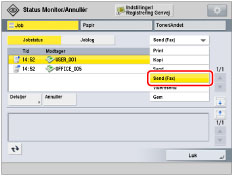 Det annullerede job vises som <Fejl> (Fejl) på skærmbilledet Joblog.