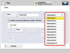 Tryk på dropdown-listen → vælg en adresseliste fra 1 til 10.