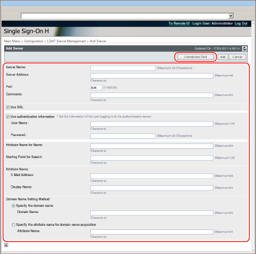 Enter the LDAP server Administrator DN registered on the LDAP server.
