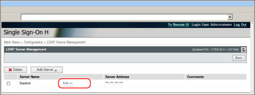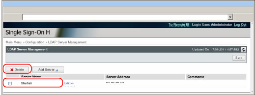 When you click [LDAP Server Management] to display the [LDAP Server Management] screen, the settings in [Configuration] is stored.