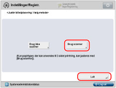 Justering kan ikke udføres korrekt med visse typer papir, f.eks. strukturpapir med grov overflade eller farvepapir. Hvis justering ikke udføres korrekt, når [Brug scanner] er valgt, skal du vælge [Brug ikke scanner] i stedet.