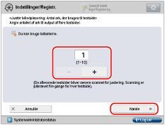 Ved angivelse af aflevering af flere testsider skal du sørge for, at alle testsiderne scannes i den rækkefølge, de afleveres. Hvis rækkefølgen er ændret, eller scanningsprocessen ikke udføres fortløbende, udføres justeringen muligvis ikke korrekt.