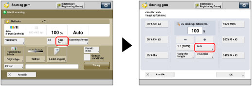 Tryk på [Auto] → [Kopiforhold].