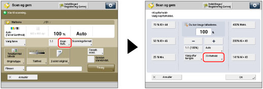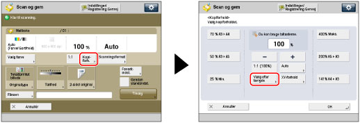 Tryk på [Kopiforhold] → vælg det ønskede zoomforhold → tryk på [OK].
