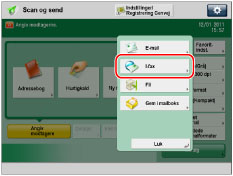 Hvis modtageren understøtter modtagelse i farver, skal du trykke på [Til] → [Næste] → angiv papirformatet og opløsningen.