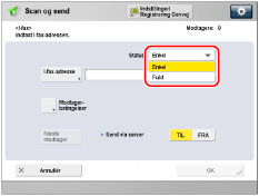 For at sende med Fuldstatus, skal det understøttes på modtagerens maskine. Sender du med Fuldstatus, kan du få bekræftet, om din I-fax blev afsendt korrekt.