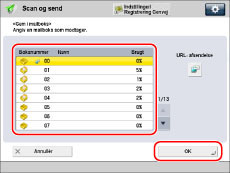 Dokumenter, der er scannet med bestemte papirformater (Brugerdef., Lang original eller Frit format), kan ikke gemmes i en mailboks.