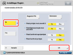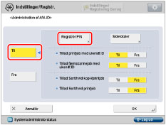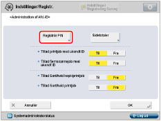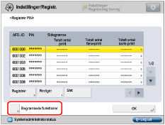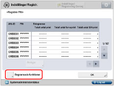 Hvis Administration af Afdelings-ID er aktiveret med Copy Card Reader-F1, kan du ikke registrere/slette Afdelings-ID'et.