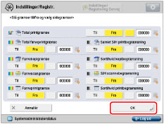 .Du kan vælge sidegrænse fra 0 til 999.999 sider. Når sidegrænsen er nået, er kopiering, scanning eller print ikke muligt.