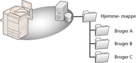 Ved opsætning af hjemmemappe på Windows (SMB) delt mappe, behøver du ikke klargøre brugermapperne. Er en mappe, som er navngivet med et login-brugernavn, ikke oprettet under hjemmemappen, oprettes denne mappe automatisk.