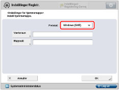 Oplysningerne, der er indtastet i trin 6 til 9 i Administratorindstillinger vises i [Værtsnavn] og [Mappesti].