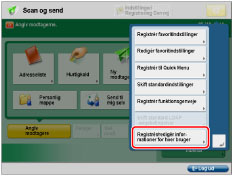 på skærmbilledet Grundlæggende funktioner for [Scan og send], skærmbilledet Send for [Se gemte filer] og skærmbilledet Send for [Fax/I-fax indbakke]. |