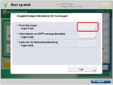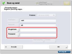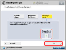 Du kan anvende personlige mapper uden at angive godkendelsesoplysninger for den enkelte bruger, når betingelserne herunder er opfyldt. I dette tilfælde skal du fravælge [Brug godk.info for hver bruger].