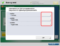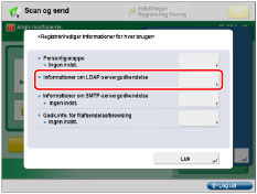Benytter godkendelsesoplysninger angivet i [Registrér LDAP-server]. (Se "Registrering af en LDAP-server.") Yderligere indstillinger er ikke nødvendige for hver bruger.