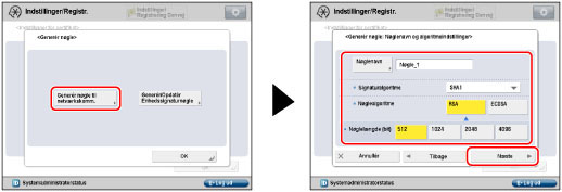 Når du har trykket på [Generér nøgle], kan du ikke bruge nogen af nøglerne, før der er blevet genereret og registreret et nøglepar.