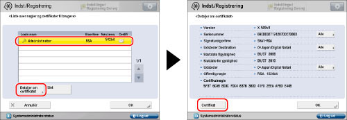 Tryk på [Administrationsindstillinger] → [Enhedsadministration] → [Indstillinger for certifikat].