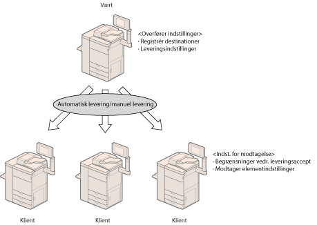Leverer du ikke [Værdi for Indstillinger/Reg.] og [Adressebog] samtidigt, bliver indstillingerne i [URL-snd- indstill.] for [Vælg Fax/I-fax indbakke] og [Indstillinger for mailboks] måske slettet.
