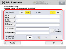 Angiv tidsintervallet for automatisk kontrol af POP-serveren i <POP-interval>.