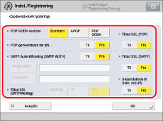Indstil <Tillad TLS (POP)> → <Tillad TLS (SMTP)> → tryk på [OK].