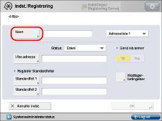 Når du har trykket på [OK], bliver det standardfelt, som du har indtastet, vist som stjerner (********) på skærmbilledet Indstillinger for I-fax.