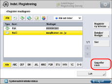 For instruktioner om registrering af en I-faxadresse kan du se "Registrering af en I-faxadresse."