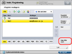 Hvis du trykker på [Søg efter navn], vises et skærmbillede til indsnævring af søgningen i adressebogen.