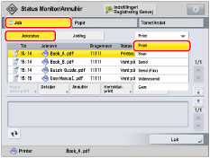 Du kan ikke afbryde et job, hvis afvikling er genoptaget, efter det har været afbrudt på grund af et hastejob, papir- eller tonermangel eller af andre årsager. Selv hvis man prøver at afvikle et hasteprintjob, bliver det ignoreret.