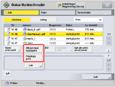 Du kan ikke afvikle hastekopier/prioritetsprint ved at vælg et hasteprintjob, der venter på at blive behandlet.