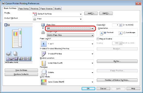 For instructions on how to display the printer driver screen, see "Printing" or "Configuring the Default Print Settings."