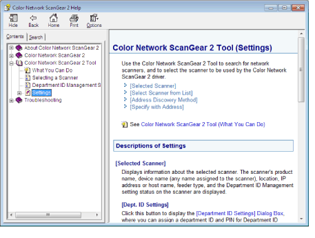 In the toolbar, click [Help] → [Color Network ScanGear 2 Help].