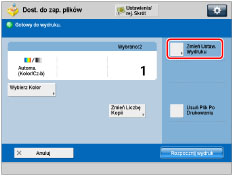 Jeśli wcześniej wybranych zostało wiele plików, to można zmienić liczbę wydruków poprzez naciśnięcie przycisku [Zmień Liczbę Kopii].