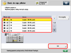 Jednocześnie, można wybrać i wydrukować do sześciu plików znajdujących się na tym samym nośniku pamięci.Jednakże, nie można jednocześnie wybrać plików z różnymi formatami.