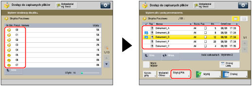Jeżeli wybranych zostanie wiele plików i wciśnięty zostanie klawisz [Zmień nazwę pliku], to wybrana (podświetlona) nazwa pliku zostanie zmieniona.