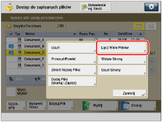 Jeżeli wybranych zostanie wiele plików i wciśnięty zostanie klawisz [Wstaw Strony], to wybrany (podświetlony) plik stanie się plikiem, do którego będzie wstawiany inny plik.
