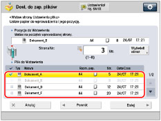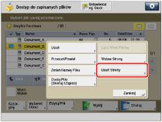 Jeśli po wybraniu wielu plików naciśniesz na [Usuń stronę], wtedy strony zostaną wykasowane z wybranego (podświetlonego) pliku.