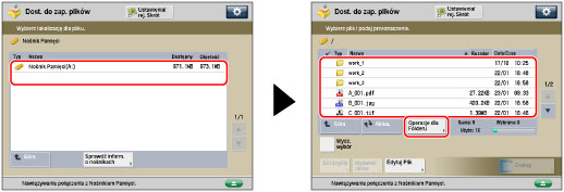 Wybierz żądany nośnik pamięci → wybierz żądany poziom folderu → naciśnij [Operacje dla Folderu].