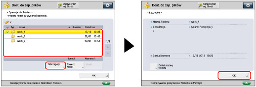 Wybierz żądany folder → naciśnij [Szczegóły] → [OK].