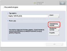 Jeżeli wyświetlony zostanie ekran informujący o konieczności regulacji prowadnic przesuwnych, należy wyregulować szerokość tych prowadnic → określić format papieru → nacisnąć klawisz [OK].