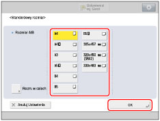 → wprowadź prawidłowe wartości.Aby można było wybrać jeden z zarejestrowanych formatów papieru ([S1] do [S5]), nieregularny format papieru należy wcześniej pod danym przyciskiem zarejestrować.Aby uzyskać więcej informacji na temat zapisywania nieregularnych formatów papieru, patrz "Rejestrowanie/edycja/usuwanie niestandardowych formatów papieru."