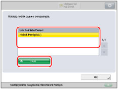 Należy upewnić się, iż w czasie usuwania nośnika z urządzenia przestrzegana jest poniższa procedura.Jeżeli nośnik zostanie usunięty w sposób inny, niż opisany poniżej, nośnik pamięci, urządzenie oraz Czytnik pamięci-A3 mogą zostać uszkodzone.