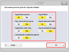 na panelu sterowania umożliwia ustawienie wielu rodzajów dźwięków, zależnie od przeprowadzanych zadań lub statusu urządzenia.|