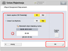 Jeżeli dla [Wyświetlanie rejestru zadań] w [Ustawienia Zarządzania] (Ustawienia/rejestrowanie) zmieniono 'Wyłącz' na 'Włącz', poniższe ustawienia są automatycznie przełączanego do pozycji 'Wyłącz':