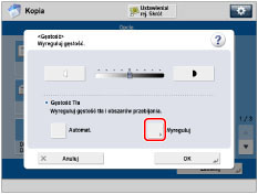 Jeżeli wyregulujesz zabarwienie tła za pomocą [Wyreguluj] dla <Zabarwienie tła>, ustawienie [Aut.] jest anulowane. Podobnie, jeżeli naciśniesz na [Aut.] podczas ręcznego wprowadzania regulacji w [Wyreguluj], wszelkie regulacje zostaną anulowane. Urządzenie automatycznie wyreguluje zabarwienie, aby dopasować tło.