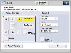 Jeżeli ustawione zostaną dowolne z dwóch funkcji [Num. Stron], [Numerowanie zestawu kopii] lub [Druk Daty] i każda z tych funkcji ma być drukowana w tej samej pozycji, komunikat proszący o potwierdzenie zostanie wyświetlony po naciśnięciu