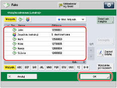 (klawisze numeryczne).Jeżeli naciśniesz na [Adresy bez Nr-u Dostępowego], wyświetlą się odbiorcy, którymi nie można zarządzać za pomocą kodu dostępu.|