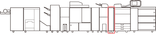 If the waste toner container must be replaced during a print job, the remaining prints are made after the new waste toner container is installed.